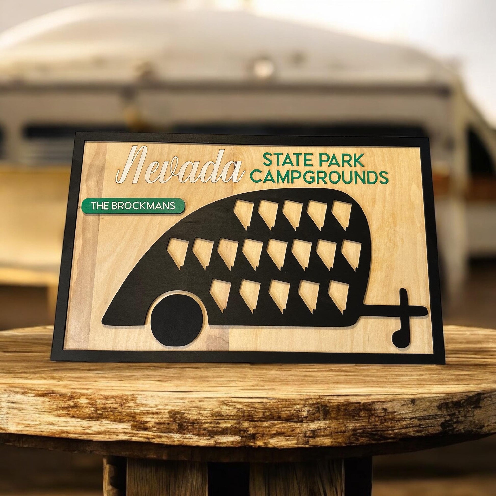Calling all Nevada camping enthusiasts! Embark on an unforgettable journey through the Silver State with our personalized camping travel map. This handcrafted wooden map lets you track your adventures in style, showcasing all the amazing state parks you've conquered.