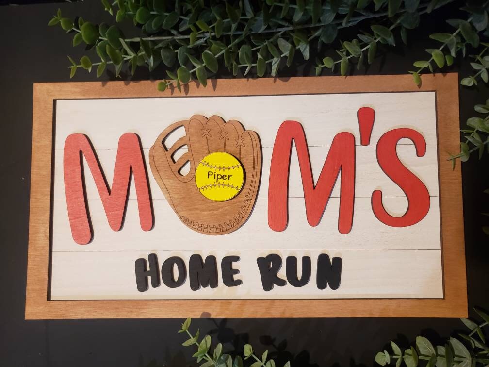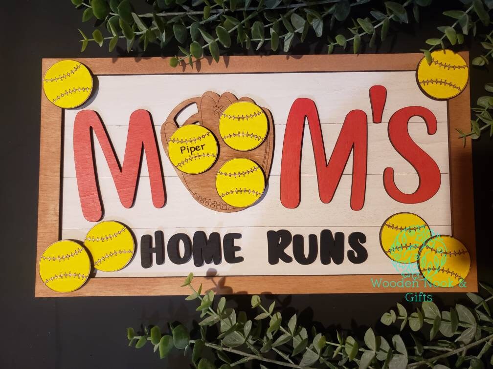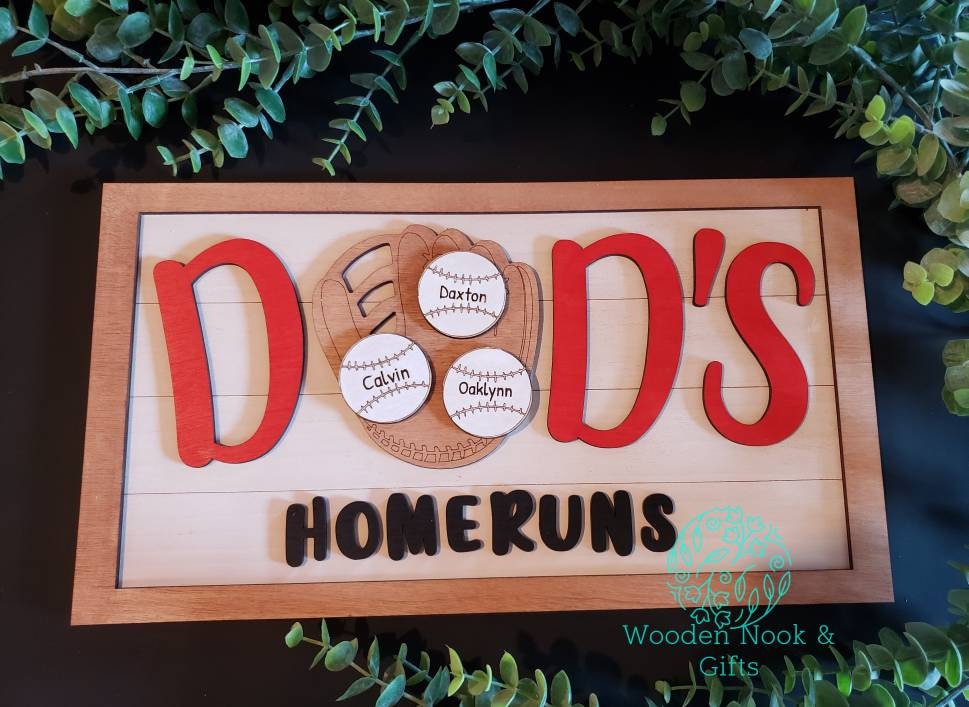 Personalized Baseball Sign - Personalized Softball Sign - Dad's Homeruns with Custom Names - Mom's Homeruns with Custom Names